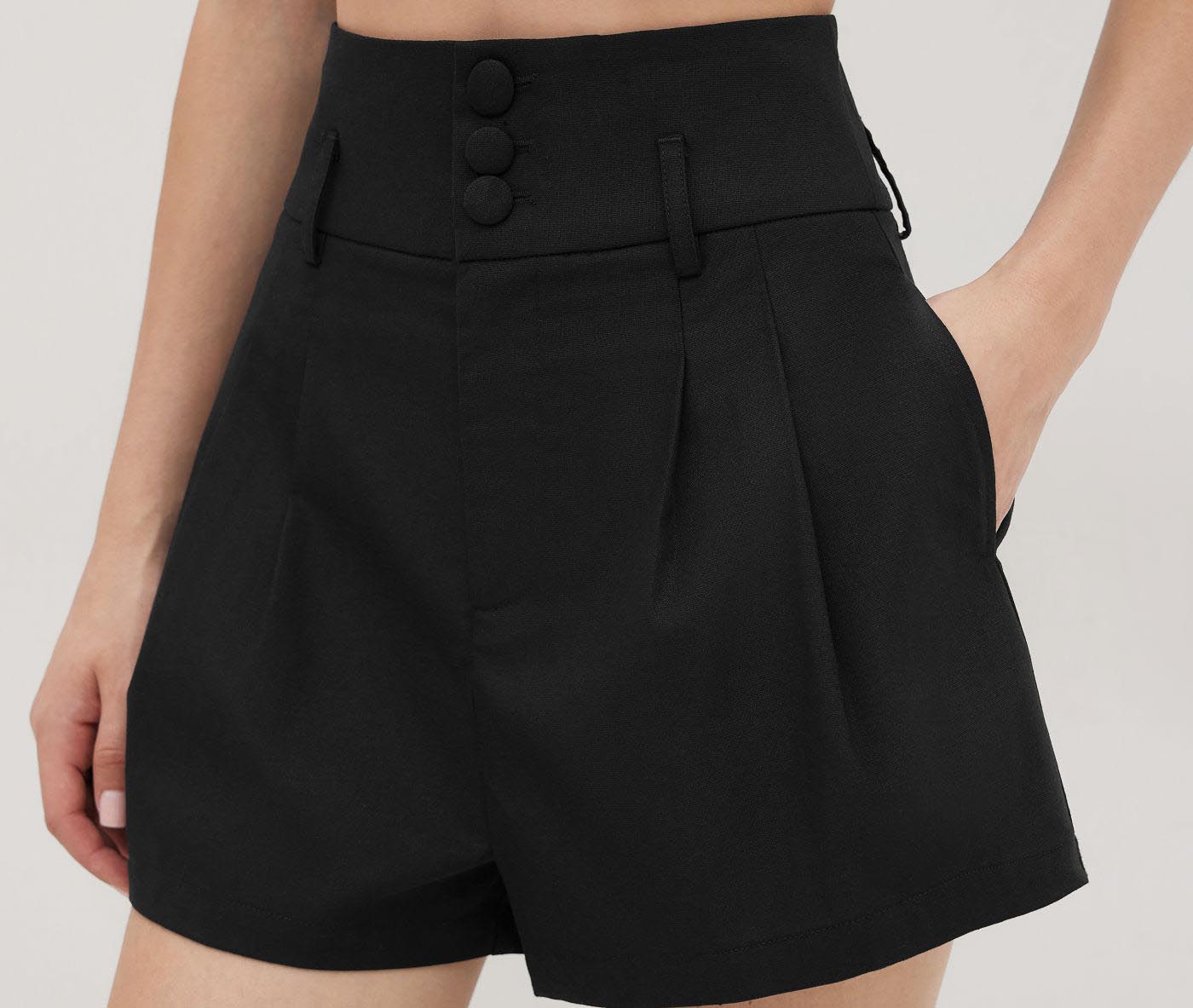 شلوارک زنانه کمربلند مجلسی مدل دکمهدار