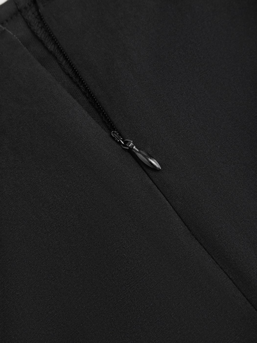 دامن کوتاه مشکی زنانه با طراحی مینیمال و شیک، دوختهشده از پارچه مازراتی باکیفیت. این پارچه ایستایی مناسب و سطحی صاف دارد که باعث میشود دامن فرم زیبایی روی بدن بگیرد. وجود چاک کناری آزادی حرکت و جلوهای جذاب به کار داده و زیپ مخفی پشت پوشیدن آن را راحتتر کرده است. انتخابی عالی برای استایل روزمره شیک، مهمانی یا استایل نیمهرسمی.